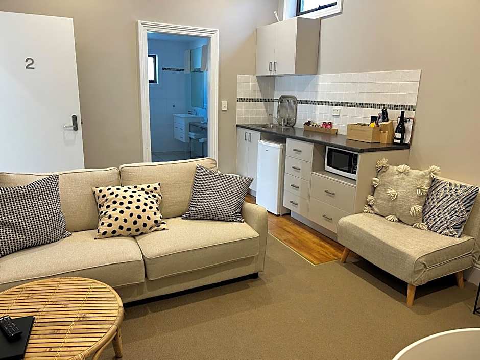 This room has a king-sized bed, work desk, walk-in shower with rain shower head, bathrobes and a hairdryer. It also includes in-room climate controlled air-conditioning and heating, tub lounge chairs and a 43-inch Smart flat-screen TV. There is a personal digital safe, alarm clock radio, ironing facilities. The kitchenette has a sink, microwave, fully stocked mini-bar and tea/coffee making facilities.